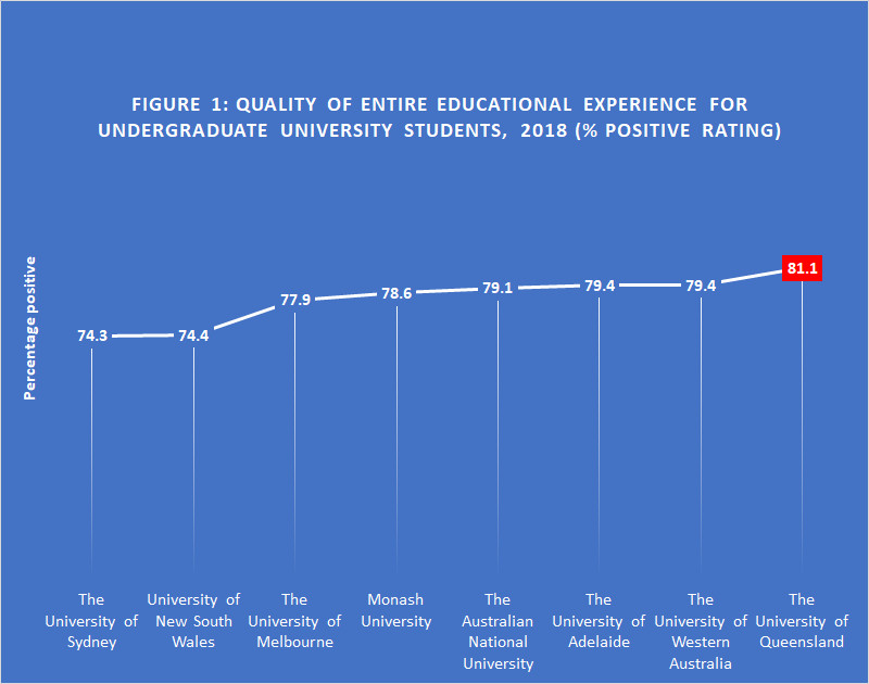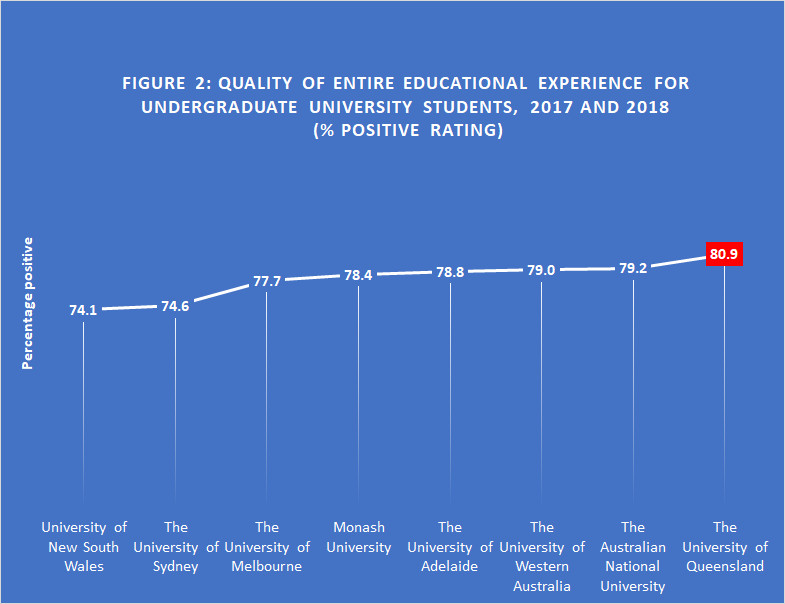 纵观2017-2018两年的数据,昆士兰大学以80.9%的高分依然位列八校第一。