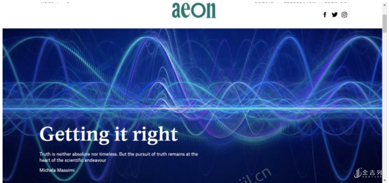 Aeon(中文意思为:漫长的时间)创立于 2012 年,是一个非营利性的电子杂志网站,主要发表哲学、艺术、社会等方面富有洞见的文章,主要包括Essays、Ieas以及Vieos三个栏目。