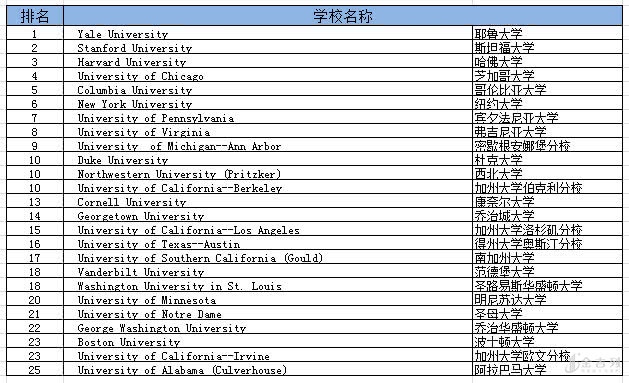2019年USNEWS最新发布的最佳法学院前三名排名依然没有发生变化,分别是耶鲁大学、斯坦福大学、哈佛大学。耶鲁大学为什么能常年稳居第一的宝座,让我们来一探究竟吧!
