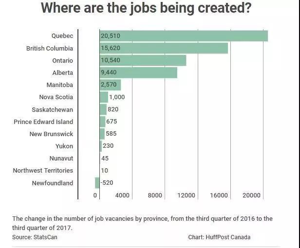 如果你恰好处于失业或者找工作的阶段,可能听到就业市场好的消息会有点泄气。下面就告诉您去哪里找这些工作机会,数据来自加拿大统计局的工作机会调查。