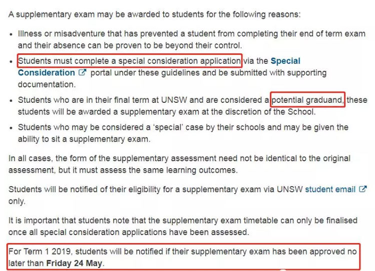 - 你Final前就提交了Special Consieration的申请 ,并且得到通过获得了补考机会,这其实就是我们所谓的“延考”