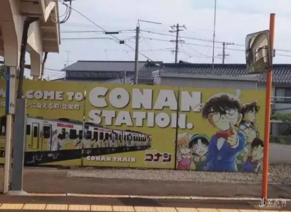 列车进站,小小的车站,满满的柯南元素,深深地感受到了小镇人民对柯南的热爱和自豪。北荣町因随处可见的柯南相关产品,而被柯南迷昵称为“柯南之里”。