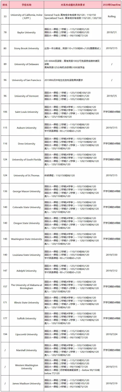 录取要求: 可以用高考总成绩或是高考英语成绩代替传统的托福或是雅思成绩,可用于当年秋季入学的申请。