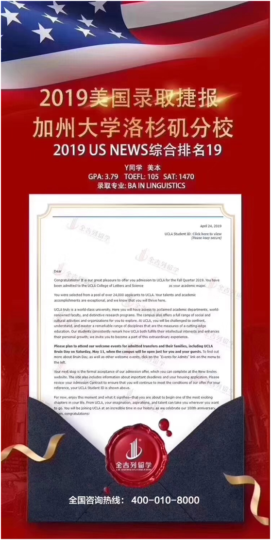 学生案例: 学生李同学,南京师大附中毕业,圣芭芭拉城市学院完成社区 2 年,收到 UCLA 、 UCSD 和 UCD 录取,最后去了 UCLA 。详细 offer 展示如下: