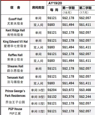 注:所有宿舍都不带空调(PGPR宿舍A型除外)