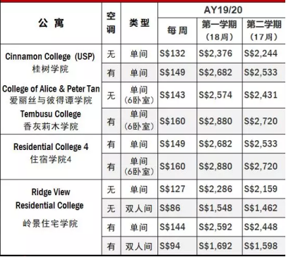 下图为国大公布的全日制本科生各专业AY2019/20的年度学费: