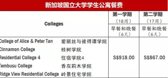 Colleges的餐费: