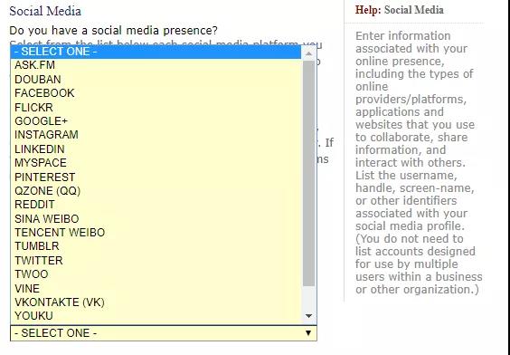 今日起,非移民想要申请美国签证,在填写DS160申请表时必须提供本人的社交媒体账号,其中包括了腾讯QQ、新浪微博、豆瓣以及优酷账号等等。