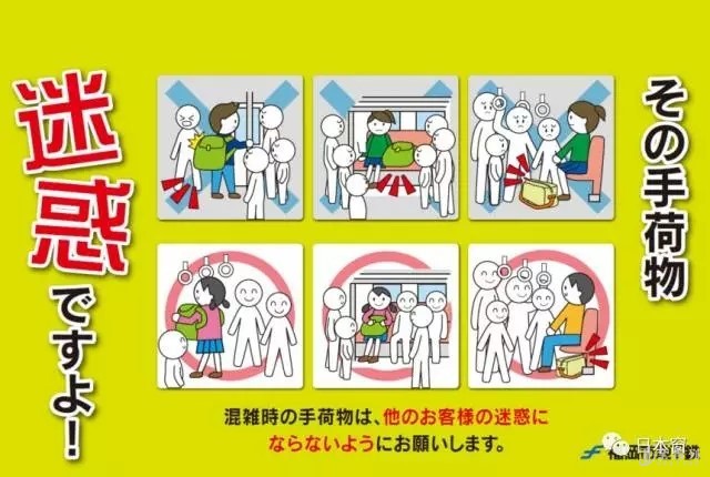 在日本列车上,都有很多教人「如何有礼貌」的广告。刚才的状况有了广告牌的提示的话其实都不难处理。让我们看看日本列车上各类广告标示吧。