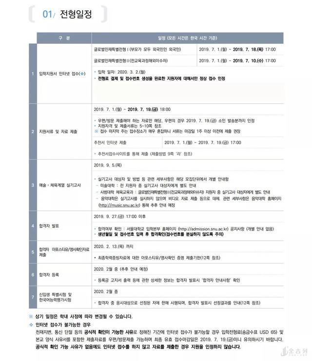 首尔大学2020年3月入学本科招生简章已经出啦 ,招生简章日程如下: