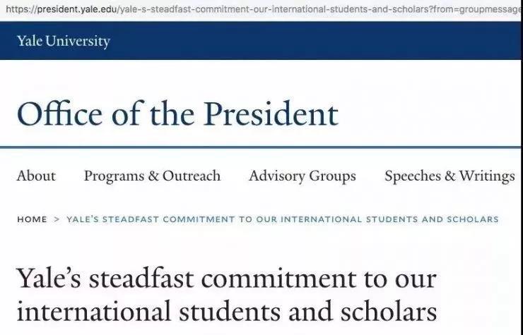 但是,面对来自美国以外的123个国家的2,800多名学生,和近2,700名从事研究和教学的国际学者,他代表耶鲁,对国际学生和学者重申他们的坚定承诺,他们对耶鲁社区至关重要。