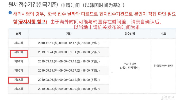 — 当然若是有想去韩国考试的同学们可参考上图的报名时间(韩国比中国快一小时,韩国时间上午9点,北京时间上午8点)