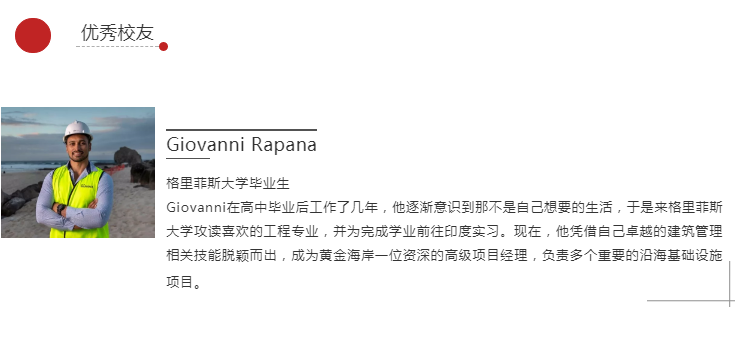 3.培养学生领导力: 通过格里菲斯大学的建造管理专业学习, 学生毕业以后将具备一系列专业技能与一定的实践经验,学生的行业知识,与解决问题、决策、沟通能力,将为其在整个建筑项目中担任领导角色做好准备。 未来几年,建筑管理的职业机会有望增加,参考职位包括建筑顾问、建筑经济学家、施工经理、建设项目经理等。