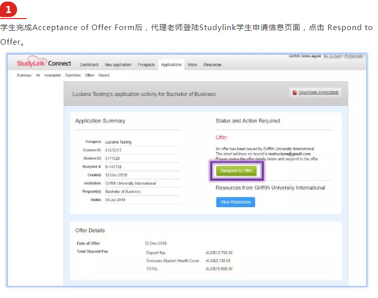学校在Stuylink发出offer后,代理老师会收到系统邮件通知,随后可登录Stuylink查看学生Offer,并按以下步骤接受Offer。