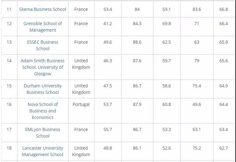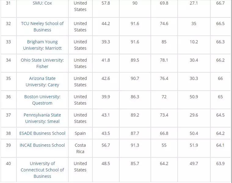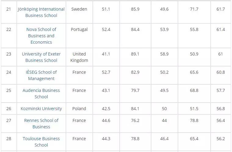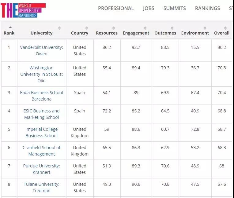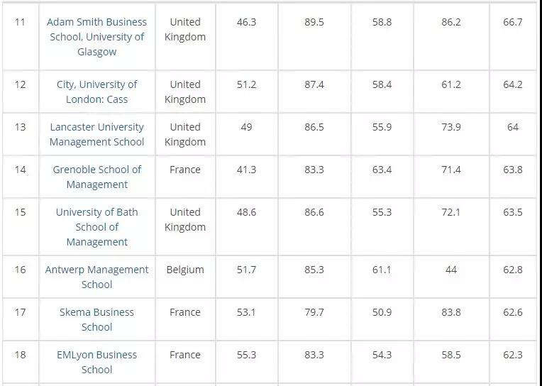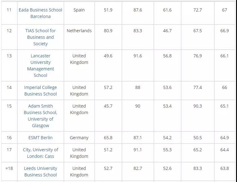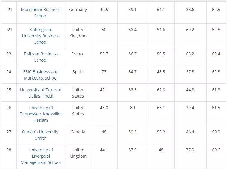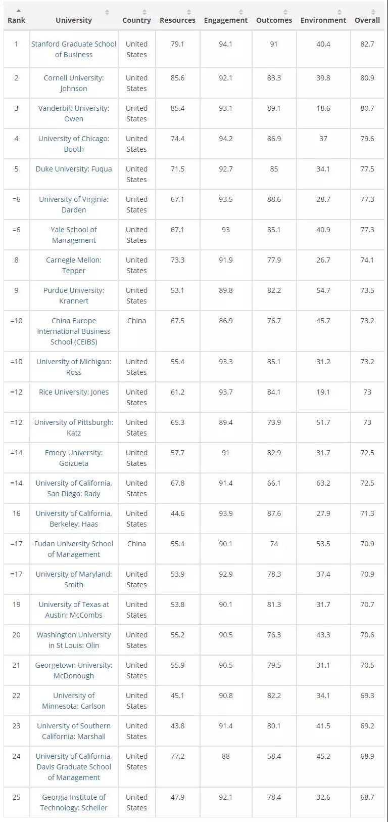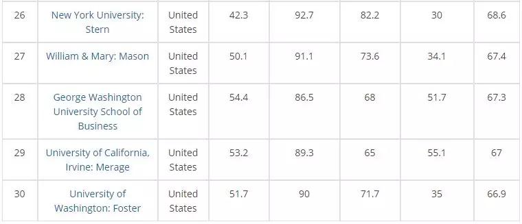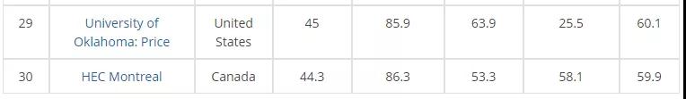 其中共有4个商科专业的榜单,包括一年制MBA榜单(one-year MBA egrees)、两年制MBA榜单(two-year MBA egrees)、管理学硕士(master’s in management)、金融学硕士(master’s in finance)。