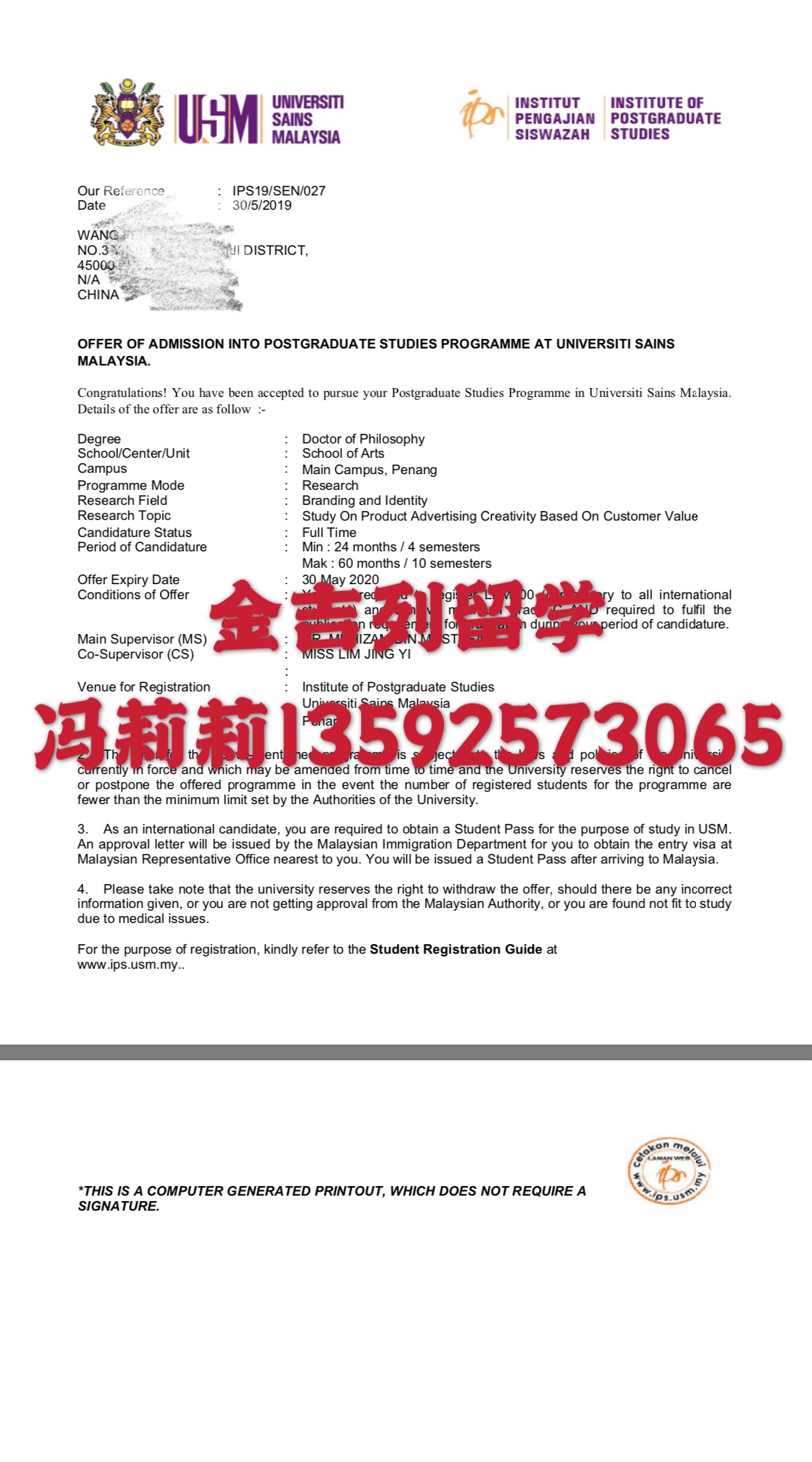 恭喜王老师喜提马来西亚理科大学平面传媒设计-品牌与身份博士录取一枚!!!