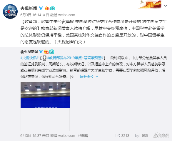 6月3日,国新办举行新闻发布会,教育部发布2019年第1号留学预警。