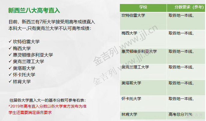新西兰本科新生可以高考成绩直入,具体分数线参考下图: