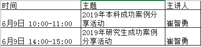 活动预告--本周日成功案例分享活动,6月9日上午10:00-11:00本科成功案例分享活动,6月9日下午14:00-15:00本科成功案例分享活动