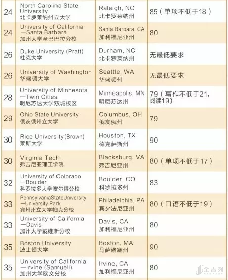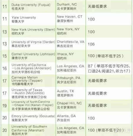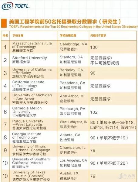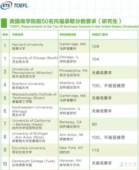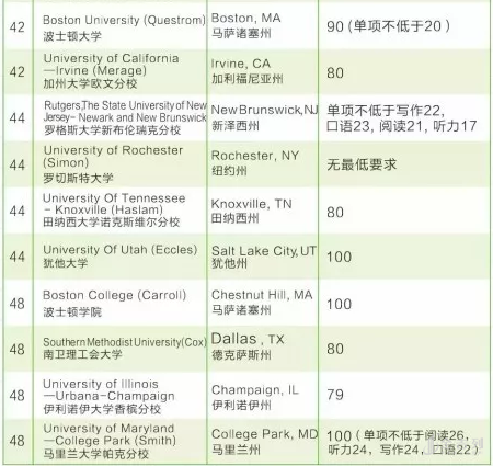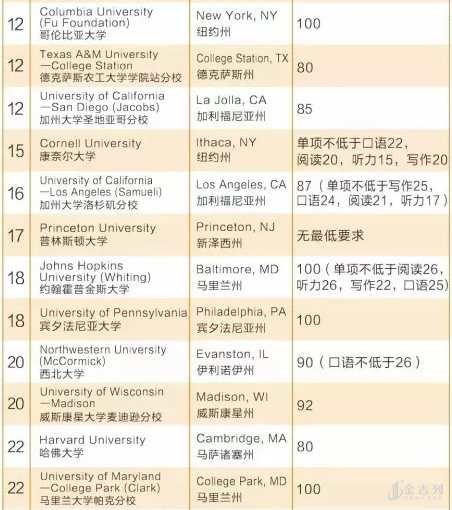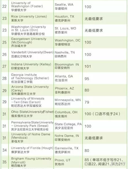 现在申请研究生的学生也越来越多,尤其是商科和工科专业更是申请的大热门。今天小编就和大家整理下美国Top 50商学院和工程学院的托福要求。