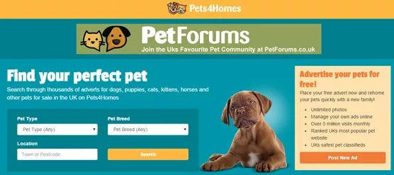 最有名的网站叫做pets4homes,这个网站是专门给卖宠物的人登广告的,不仅仅是猫狗,其它宠物也都有卖。