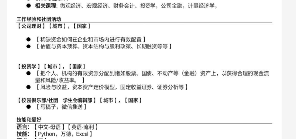 简历二:(虽短小精悍但内容匮乏,HR看不到亮点)