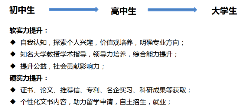3)参加背景提升活动的重要性还体现在软实力和硬实力两方面,不论初中生、高中生还是本科生,具体看下图