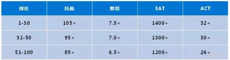 硬实力上,虽说标准化考试成绩的重要性在减弱,但绝不是说,标化成绩不重要了,这还是证明你硬实力的重要标准。下面锐领为大家提供一个择校的成绩参考,可以进行一定的初选。