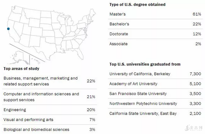 加州第三大城市圣何塞,在硅谷的位置带动经济和人口增长,有32,300名国际生,提供了62,400个OPT实习。硅谷嘛~STEM专业占83%,而且印度学生数量独占鳌头。