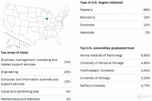 芝加哥地区虽然的国际生数量很多,有54,300人,全美第四,不过OPT数量有59,000个,就业机会与纽约、旧金山相比稍微差了点,所以没留在当地的学生大都去了这两个地方。