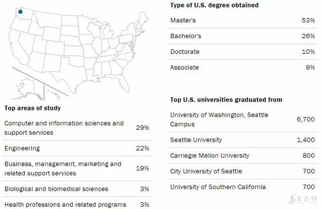 西雅图地区国际生数量有16,700人,提供34,500个OPT实习,大约84%的学生选在留在当地工作。