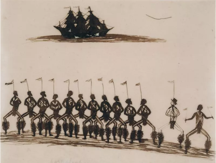 Tommy McRae是一位Kwat Kwat艺术家,他的钢笔和墨水画作品可以追溯到1880年代。他的作品经常包括对原住民和欧洲定居者之间的观察。