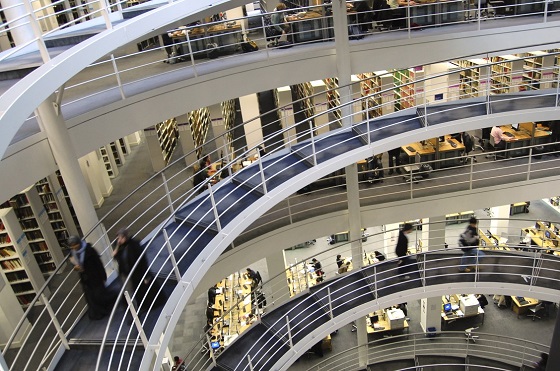 LSE最富盛名的政治经济图书馆修建于1896年,是英国的国家社会科学图书馆,同时也是全球最大的社会科学图书馆。这里的标志是从上贯穿而下的螺旋型楼梯,图书馆内有超过4百万本的图书杂志,二十多万份的电子书籍和期刊,多处自习室和小组学习区,500多台电脑,还有iMac和MacBook Air可供学生使用。图书馆还会开放不定时展览,展出图书馆的珍贵藏书。