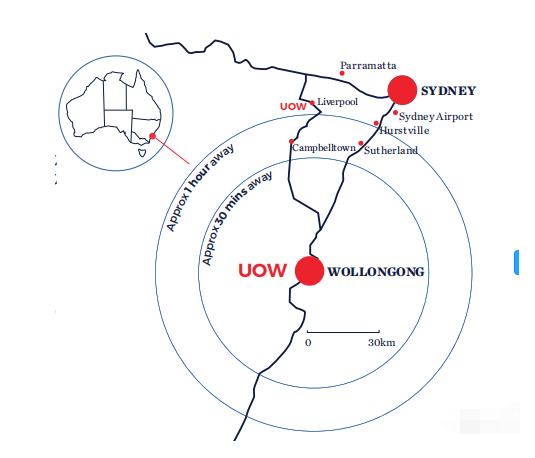 伍伦贡大学位于澳大利亚美丽的海滨工业城市 - 伍伦贡(词意:海之声,海之歌,水之彼岸,美味的雨宴或五岛),因其出众的学术成绩,出色的教学质量以及强大的毕业生竞争力而享誉世界。现有在校生约26,000多名,其中包括来自世界80多个国家的约6000名国际学生。
