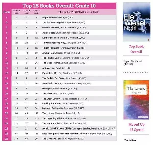 作者 Elie Wiesel 根据大屠杀时期他在集中营的经历所著的传记体小说。这本书对高中生的普遍意义在于:善与恶,大屠杀,信仰与无信仰,犹太人经历。