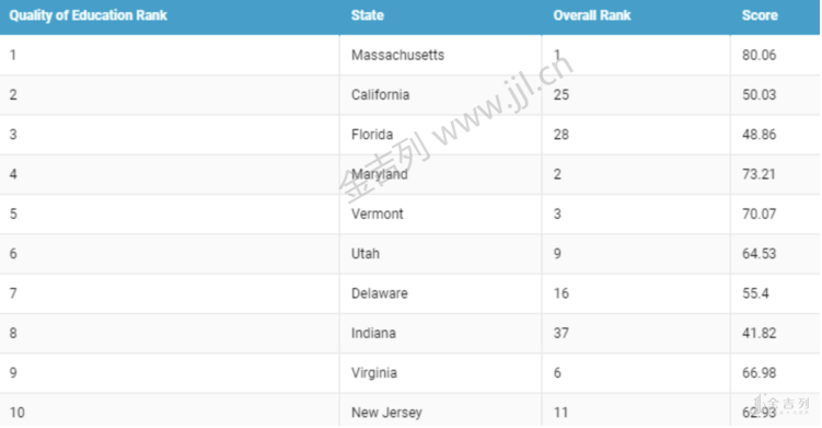 马萨诸塞州得第一名真的毫无悬念,毕竟坐拥哈佛大学和麻省理工两所顶尖名校,服气!