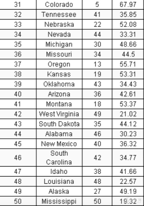 看完前三名,也让我们关心一下最后垫底的兄ei:密西西比州!