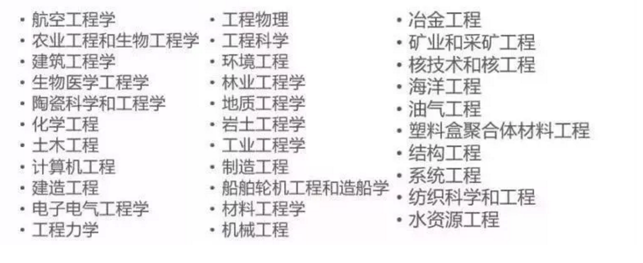 但是这还不是最多的,具体的工程类专业细分如下图。