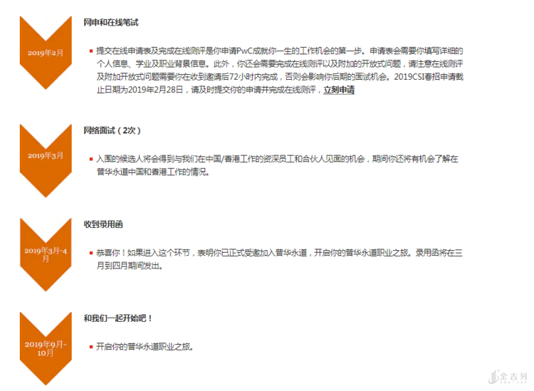 并且,普华永道在北美洲,设有专属的校园招聘人员负责招募对普华永道中国大陆和香港地区感兴趣的同学,并且有机会在北美校园或PwC办公室和同学们面谈。无需返回中国大陆或香港地区进行面试。 在入职前,你会收到普华永道为你量身定制的培训课程。这些课程会为你在今后职场的成长道路上奠定坚实的基础。内容多彩的培训以及经验丰富的导师将为你在普华永道的前行扬帆助力!所以贾老师建议我们在国外期间如果有机会就赶紧行动起来吧。