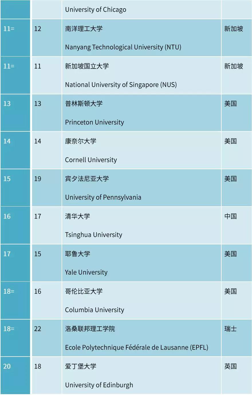 同期亚洲不能错过的是亚洲最佳的新加坡,今年南洋理工学院和国立新加坡大学两所学校排名并列11,果然相亲相爱!
