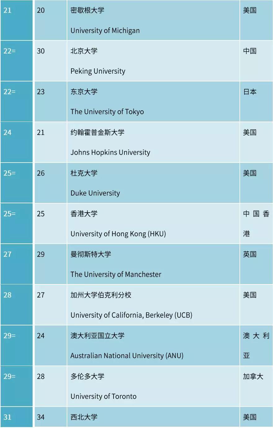 进入前100排名的依然有6所来自中国大陆 。 其中清华大学继去年挺进前20之后,今年再次上升一位,排名16 ;北京大学也从去年的30名一跃成为22名,进入前20有望!