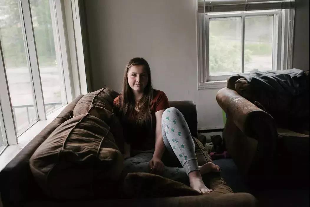维多利亚·奥斯瓦尔德坐在她文章中描述的沙发上