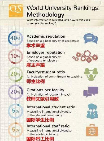 在研究排名之前,我们先了解一下QS的评分标准: