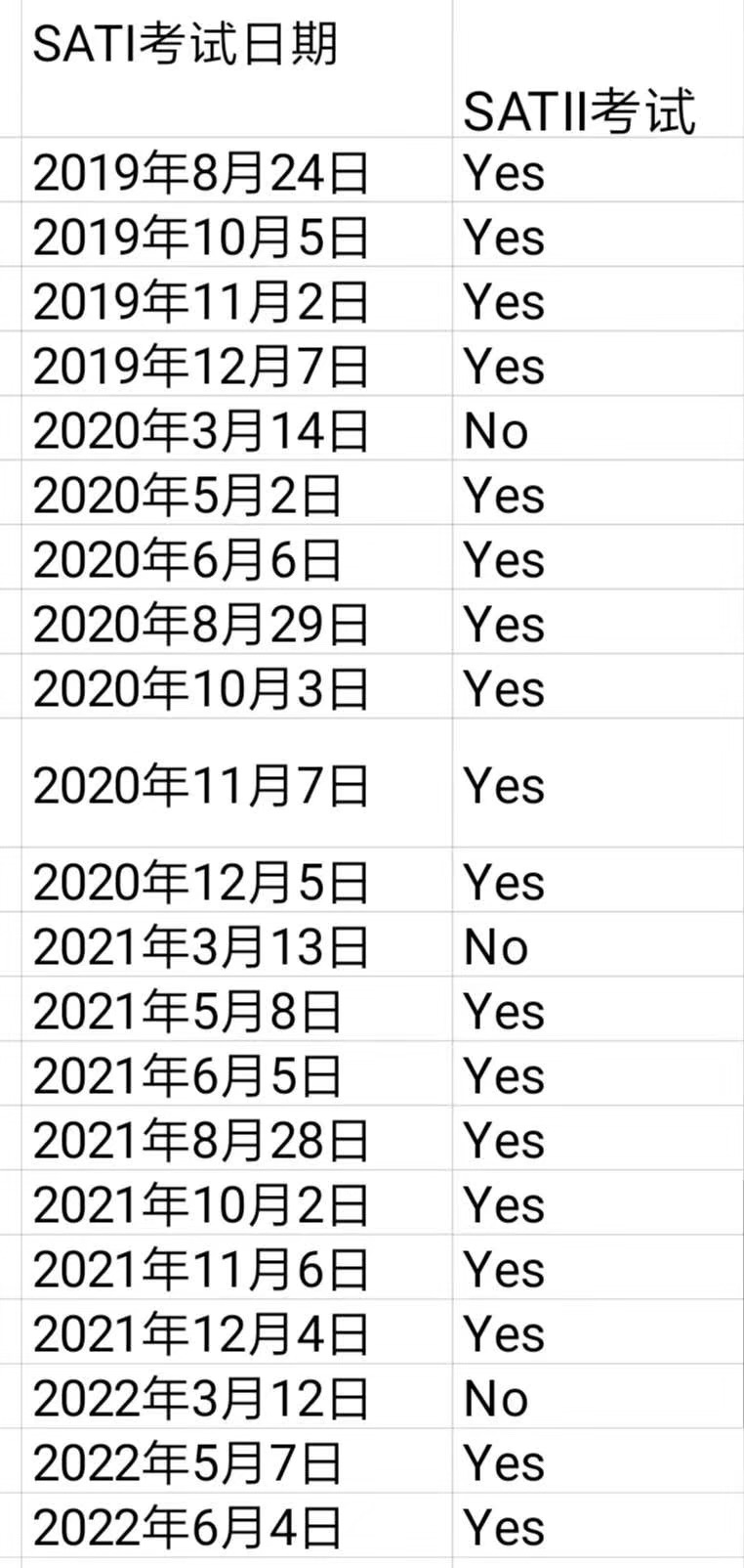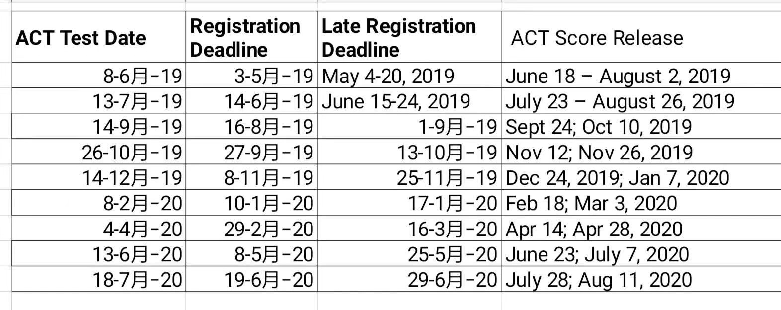 以下为2019-2020SAT&ACT考试时间安排: