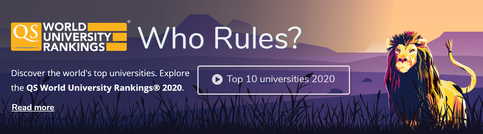 QS世界大学排名(QS Worl University Rankings)是由英国一家国际教育市场咨询公司Quacquarelli Symons所发表的年度世界大学排名。QS公司最初与英国《泰晤士高等教育增刊》共同发布,该排名是历史第二悠久的全球大学排名。2019年6月19日, 2020QS世界大学排名发布,本次排名包含全球1000所著名大学,横跨85个不同国家和地区。