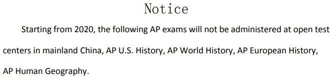 这意味着拥有中国护照的考生,如果想考美国历史、世界历史、欧洲历史和人文地理这四门课程的话,将不得不前往最近的香港、新加坡、日本等国家进行考试。
