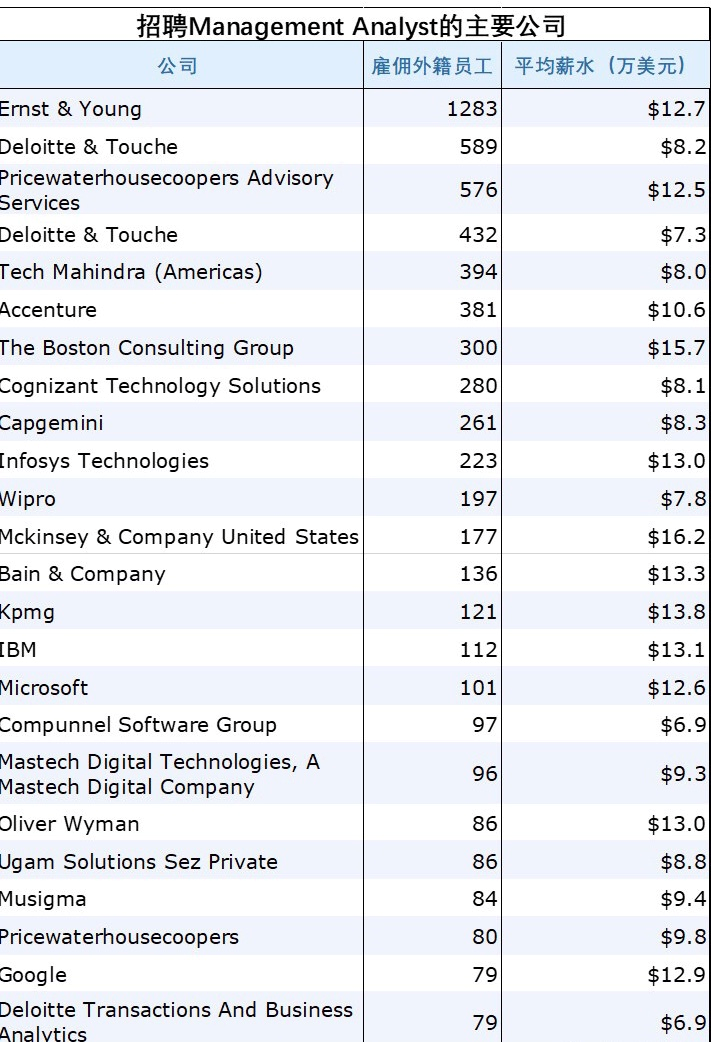 一般来说商业分析专业的学生面向的主要工作职位是Analyst, Business Analyst一般包括 Management Analyst, Financial Analyst, Marketing Analyst 等职位名称中。关于BA就业方向及薪水如下图