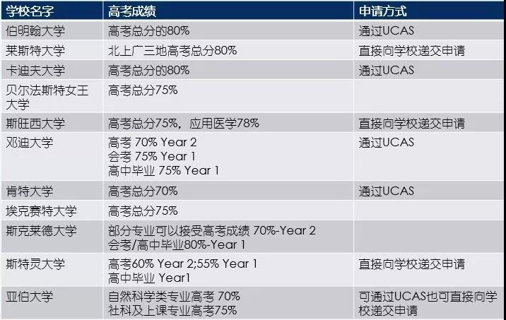 国内高考成绩重点线的学生可申请英国排名前十位大学; ·