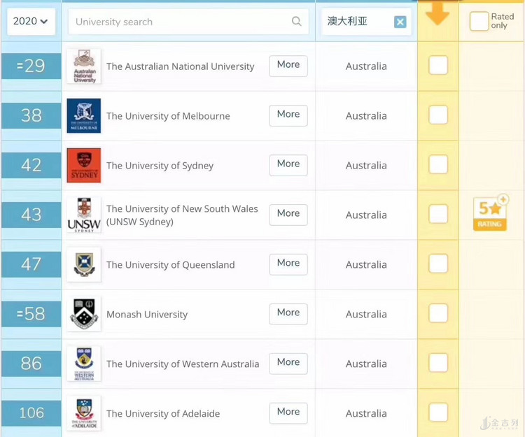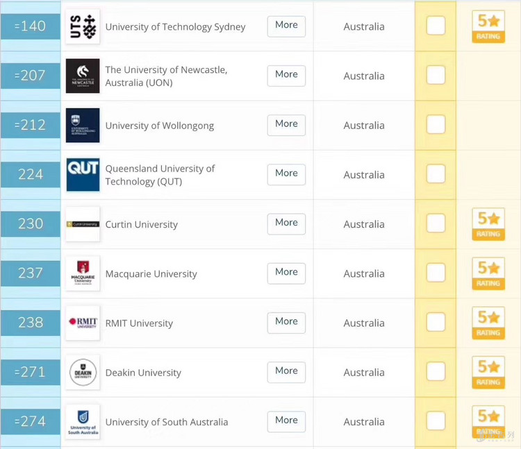 而澳洲八大之中进步最大的当属西澳大学和阿德莱德大学,分别进步了5名,8名!