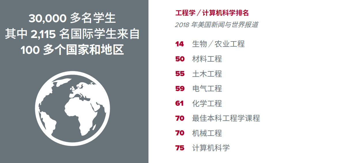 华盛顿州立大学成立于1890年,位于华盛顿州是一所研究型公立大学,在最佳公立大学中排名第68,美国USNEWS排名第140,学校有普尔曼,斯波坎,三城,温哥华和埃弗雷特五个校区,五个校区提供不同的学习机会,但却拥有完全一致的教学质量,师资标准和毕业学位证书。